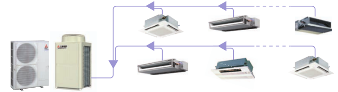 室內(nèi)機(jī)通過分支管(或分支集管)連接至室外機(jī),配管簡單方便。