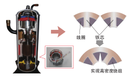 三菱電機(jī)全新推出的YRJC菱睿上出風(fēng)系列空調(diào)機(jī)組使用了改進(jìn)的渦旋式壓縮機(jī),在原有大容量低壓外殼結(jié)構(gòu)的基礎(chǔ)上,結(jié)合了三菱電機(jī)專利的“龍骨馬達(dá)”集中式繞組方式。